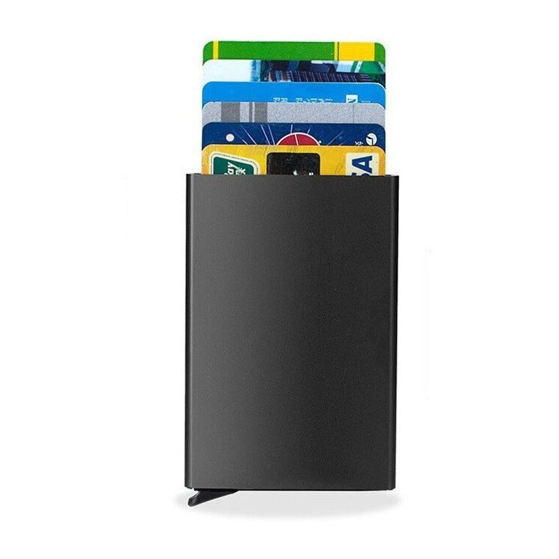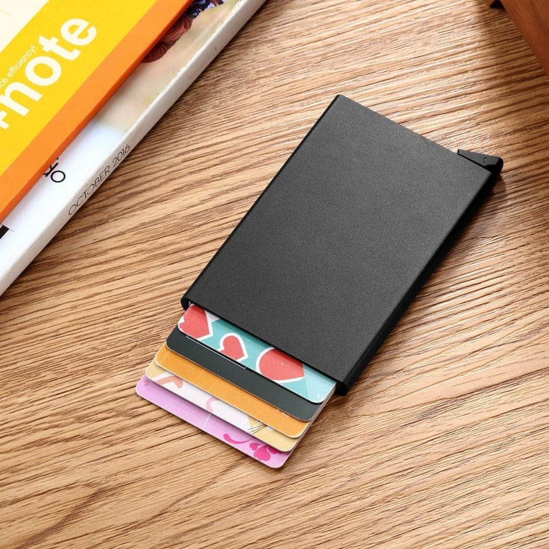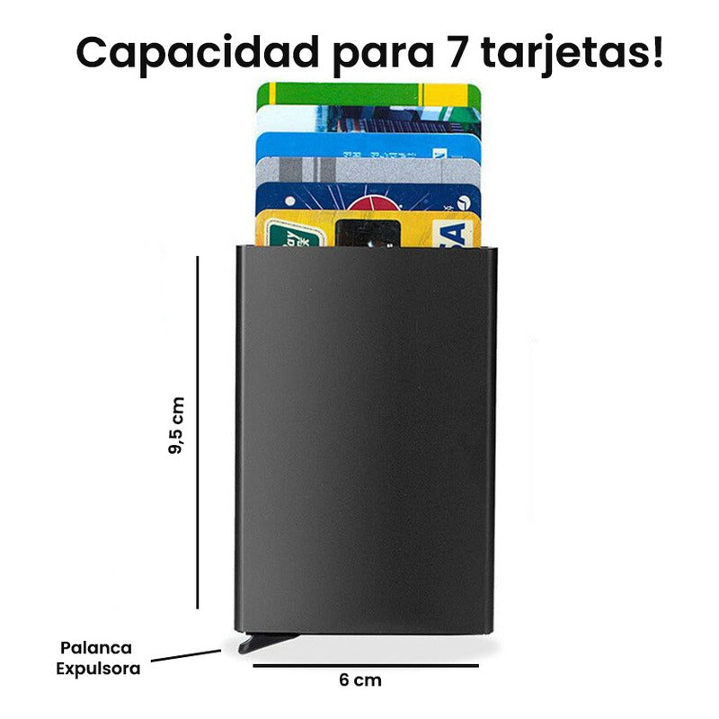 Billetera Tarjetero de aluminio con protección Rfid anti robos y clonación! Capacidad para 7 tarjetas! Mantén tus tarjetas organizadas y a mano con este elegante tarjetero de aluminio. Su diseño moderno y minimalista lo hace perfecto para llevarlo contigo a todas partes, y su botón de expulsión de tarjetas te permite acceder a ellas rápidamente y sin esfuerzo. Este tarjetero está fabricado en aluminio resistente y duradero, lo que lo hace ideal para el uso diario y para proteger tus tarjetas de cualquier daño. Además, su sistema de expulsión de tarjetas es suave y fácil de usar, lo que te permitirá acceder a tus tarjetas con una sola mano. El tarjetero tiene capacidad para almacenar varias tarjetas, desde tarjetas de crédito hasta tarjetas de presentación, lo que lo convierte en un accesorio práctico y versátil. Además, su tamaño compacto te permite llevarlo cómodamente en tu bolsillo, bolso o cartera, sin ocupar demasiado espacio.