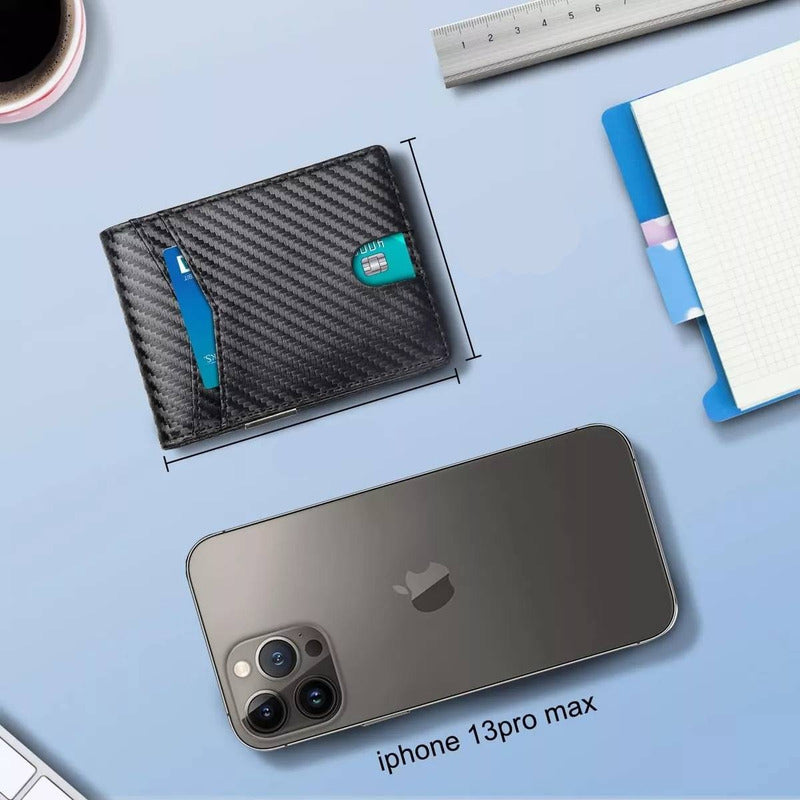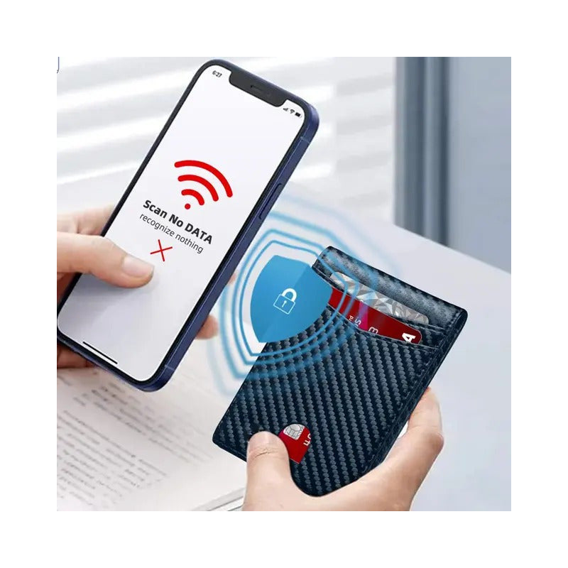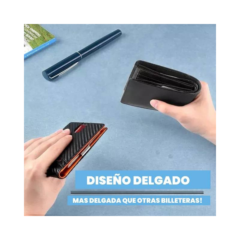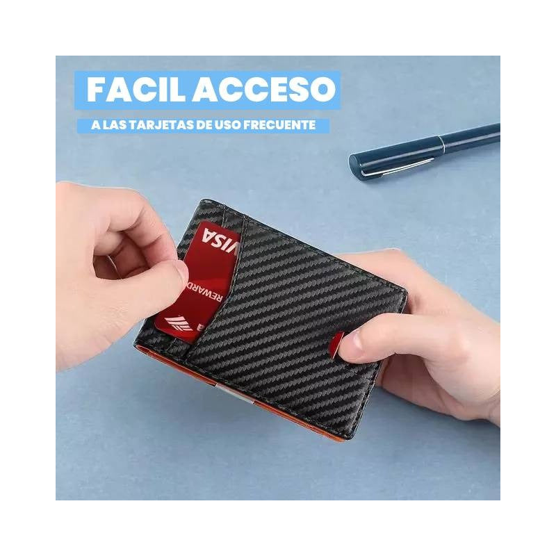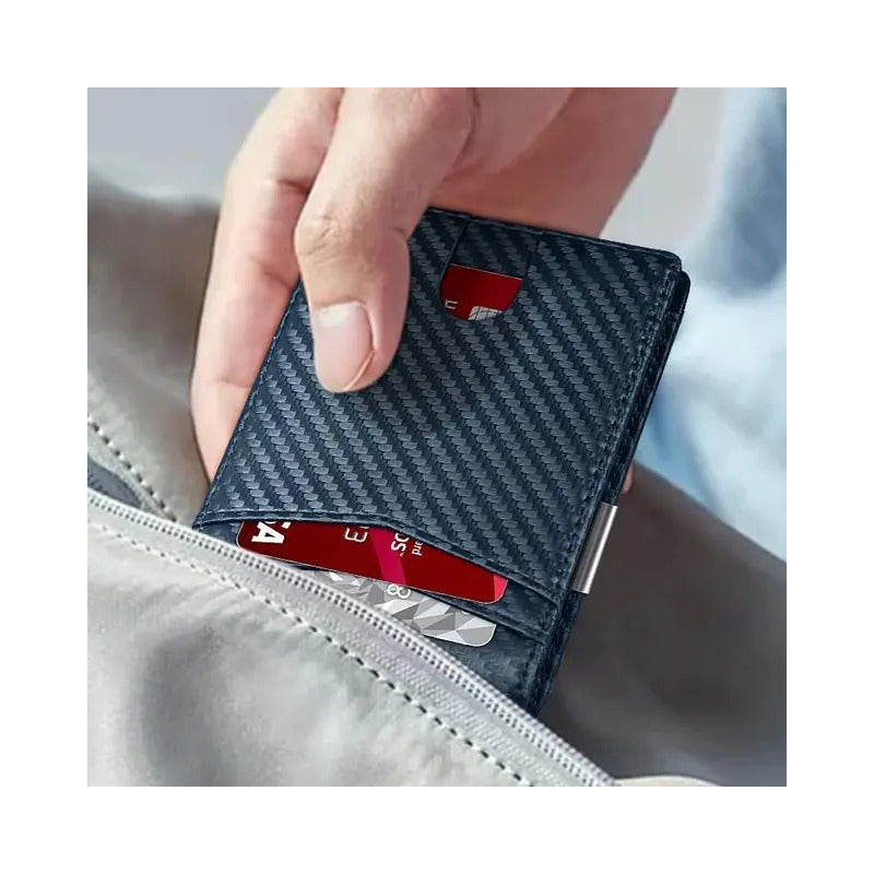 Características: -Diseño en Fibra de Carbono. -Protección Rfid anti clonación. -12 Ranuras para tarjetas. -Clip para Billetes Medidas: 10,5 cm de ancho x 8 cm de alto x 1 cm de grosor.