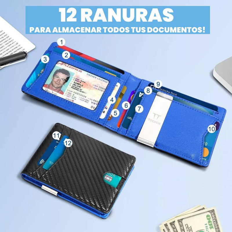 Billetera Tarjetero Delgada Con Protección Rfid 12 Ranuras
