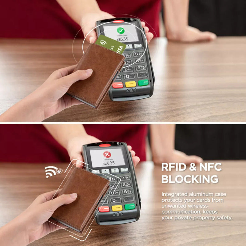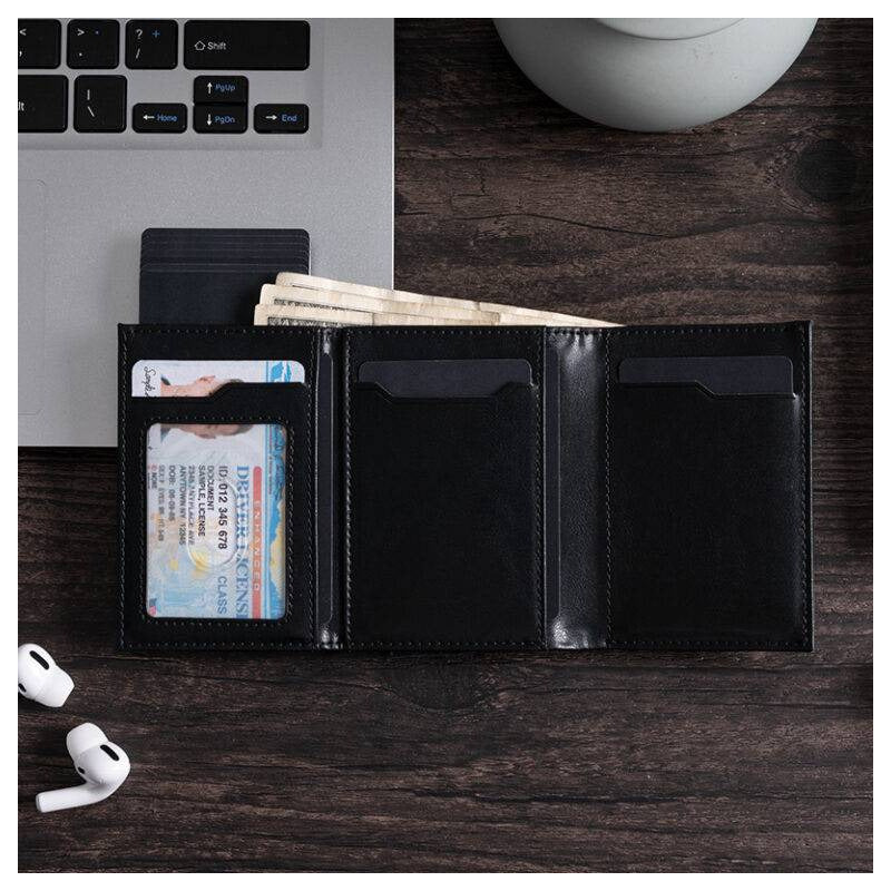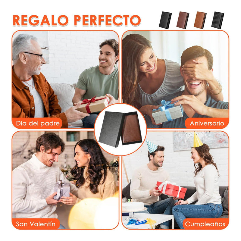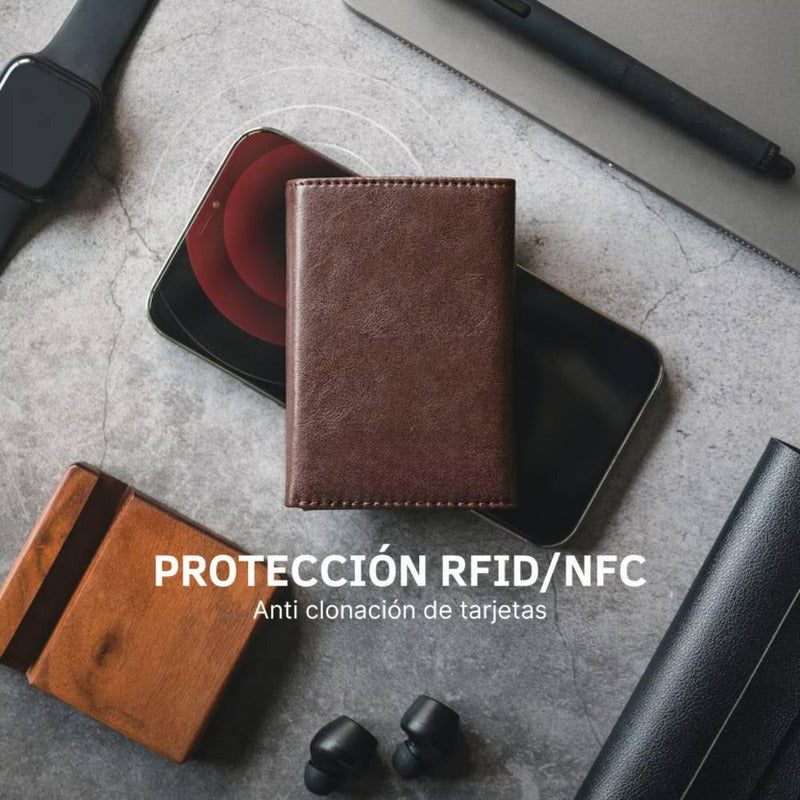 Billetera Premium con Protección RFID – Estilo, Seguridad y Durabilidad Protege tus tarjetas y tu información con nuestra Billetera Premium con tecnología RFID. Diseñada para quienes buscan elegancia y funcionalidad, esta billetera combina materiales de alta calidad y un diseño moderno que se adapta a tu estilo de vida. Características principales: Tecnología RFID: Bloquea las señales de radiofrecuencia para evitar el robo de datos de tus tarjetas de crédito, débito y documentos personales. Diseño Elegante: Fabricada con cuero sintetico , esta billetera ofrece un acabado sofisticado y atemporal. Capacidad Óptima: Espacio para hasta 6 tarjetas, compartimento horizontal para billetes, licencia de vehiculo/conducir y bolsillo con cremallera para monedas. Compacta y Funcional: Diseño delgado que se adapta fácilmente a tu bolsillo sin sacrificar espacio de almacenamiento. Durabilidad Garantizada: Hecha con costuras reforzadas y materiales resistentes que aseguran una larga vida útil. Perfecta para quienes buscan una billetera estilizada que proteja su información personal y mantenga todo organizado. ¡No te arriesgues al robo digital, elige seguridad y estilo con nuestra billetera RFID!