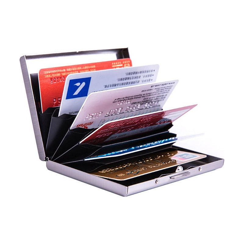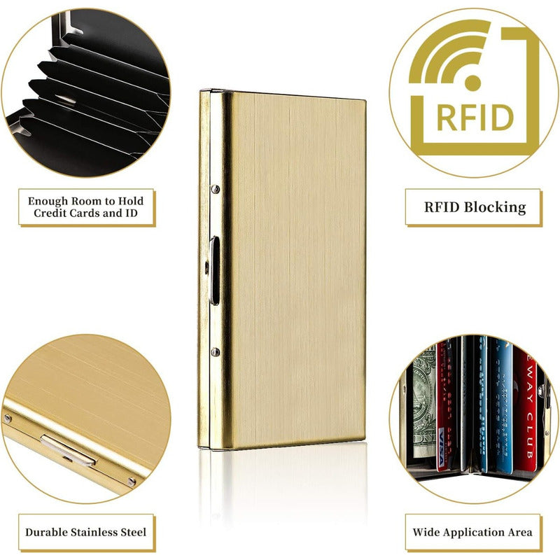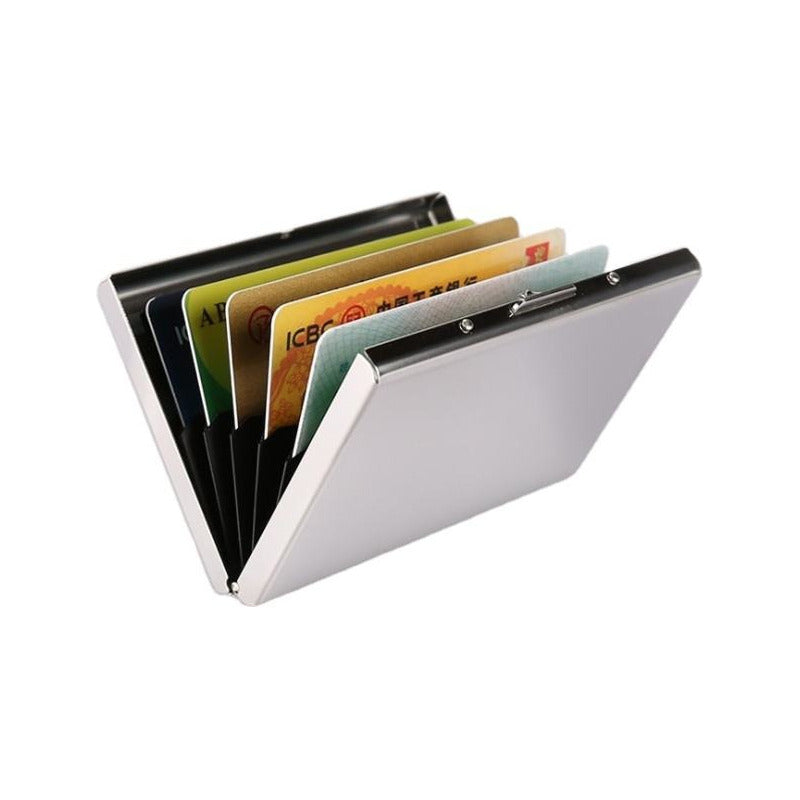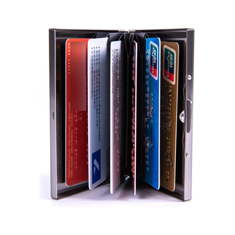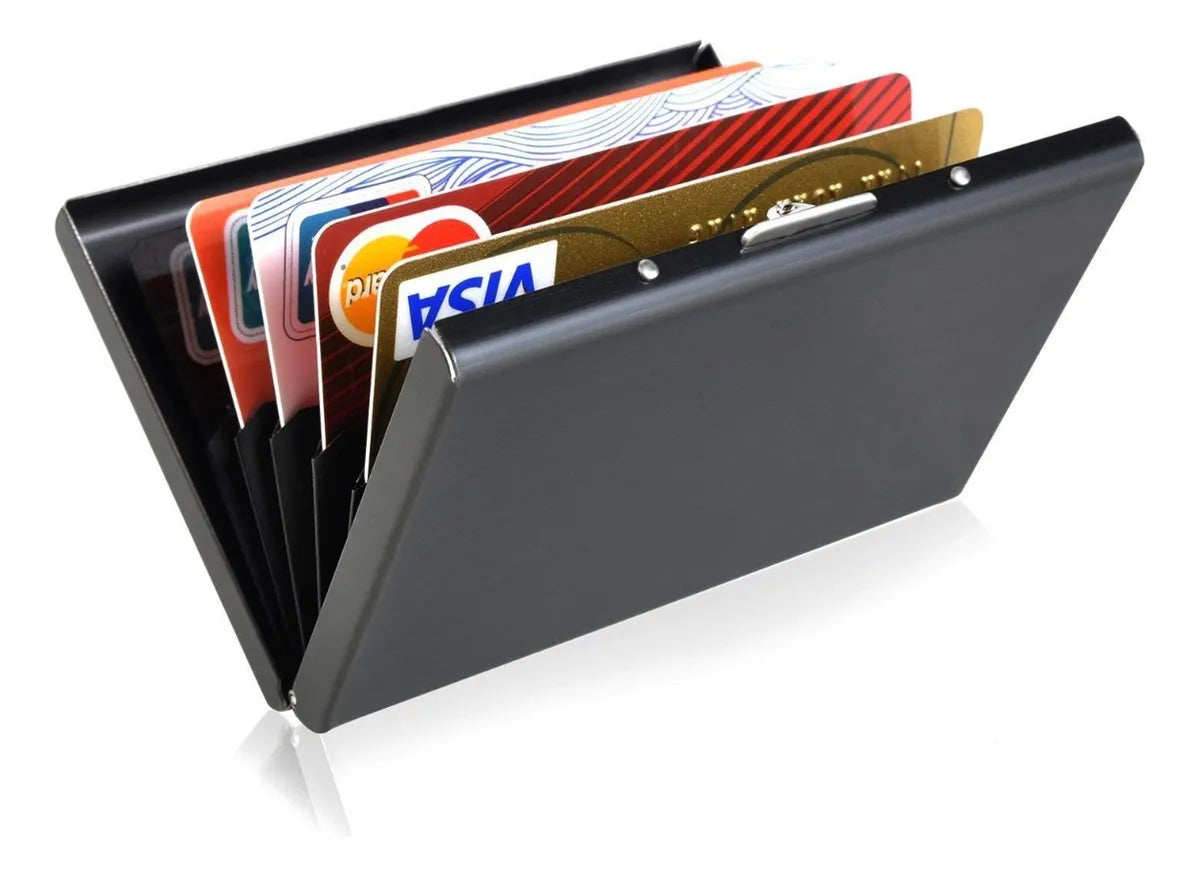Billetera Tarjetero elegante con separador para tus tarjetas! Capacidad para 8 Tarjetas! Con sistema Rfid para evitar robos y clonación! Disponible en color: -Plateado -Dorado -Negro