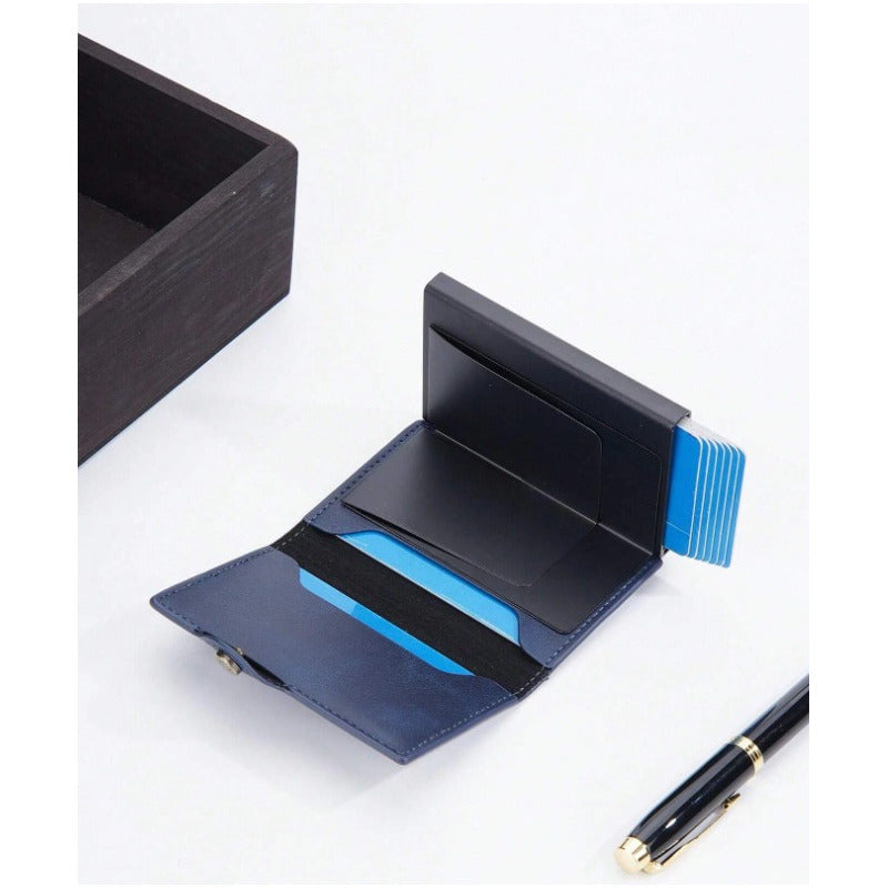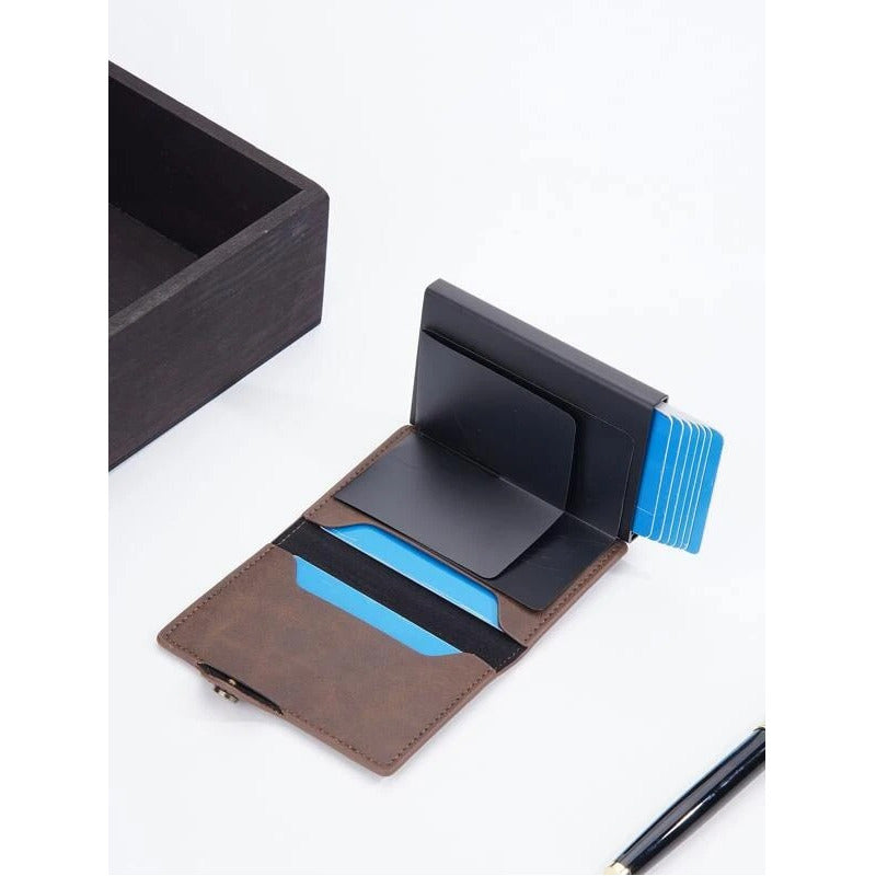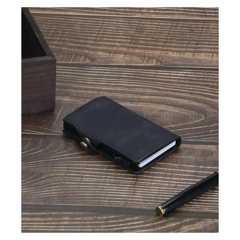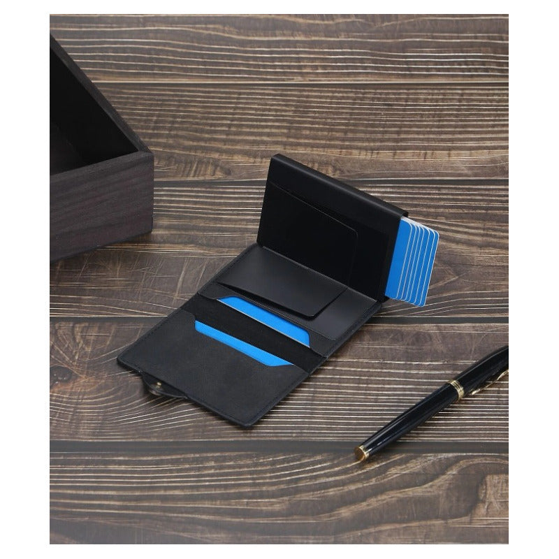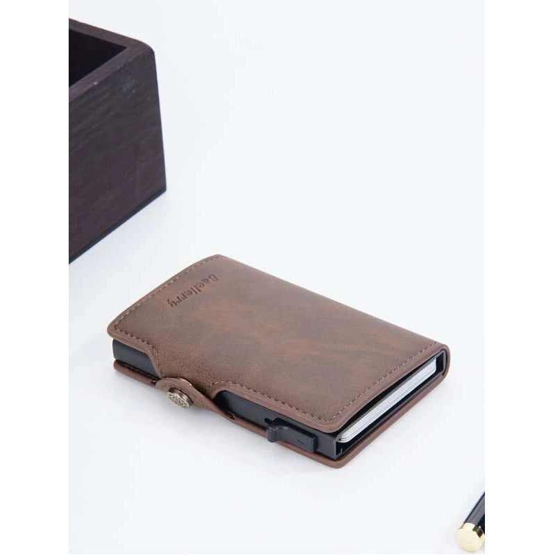 Billetera Tarjetero Anti Clonación Con Bloqueo Rfid Baellery Disponible en : Negro, Marrón oscuro y Azul Marino. Materiales : Cuero Sintético y Aluminio Capacidad para 8 Tarjetas en el tarjetero de metal + 4 en los bolsillos, 12 en total! Marca: Baellery Modelo : SV0652 Medidas :10x7x2 cm Peso: 113g