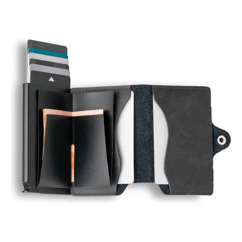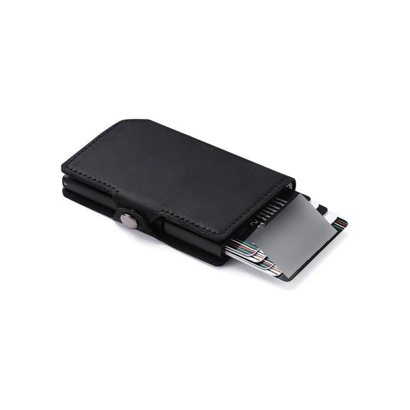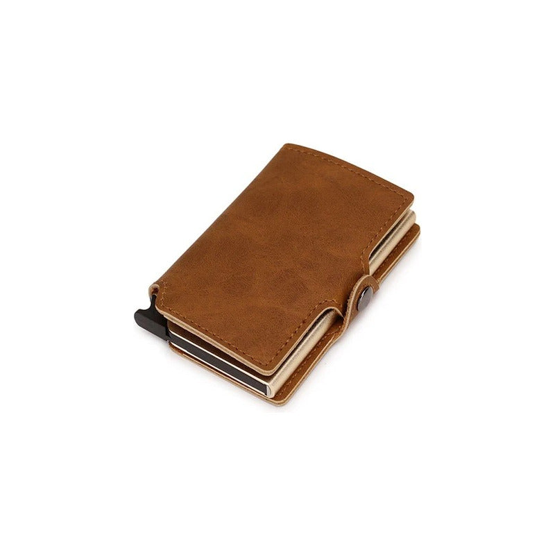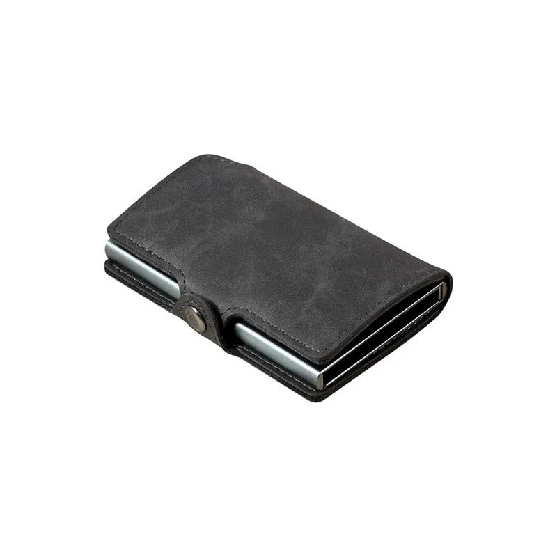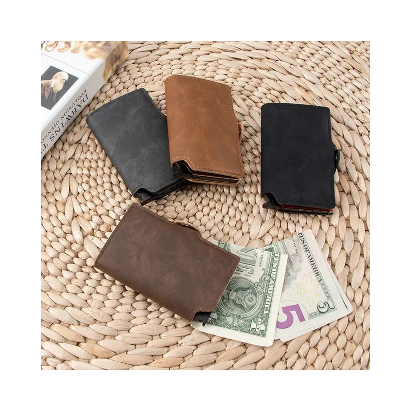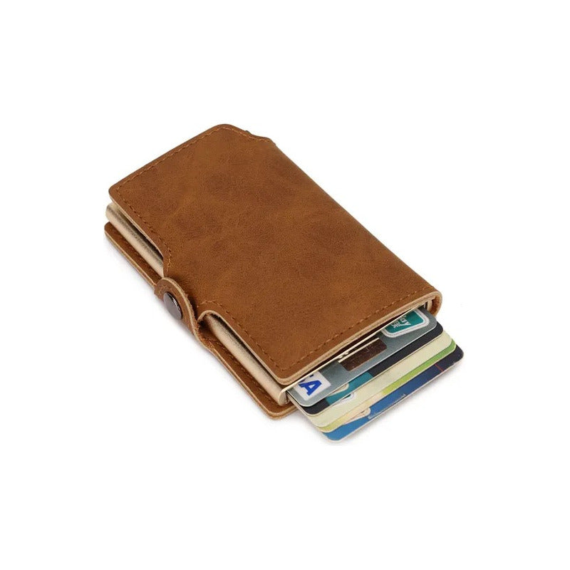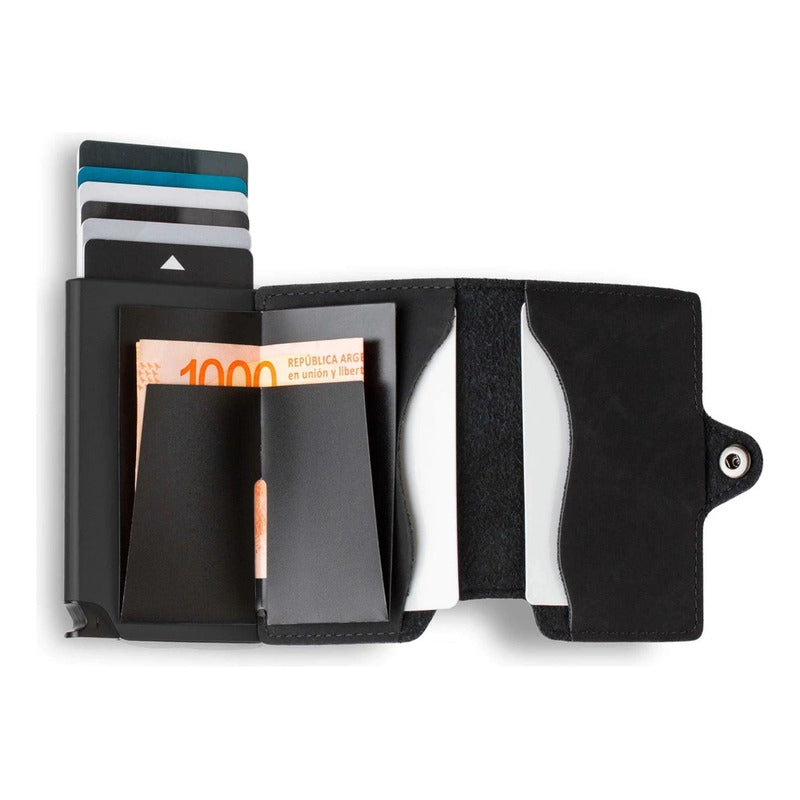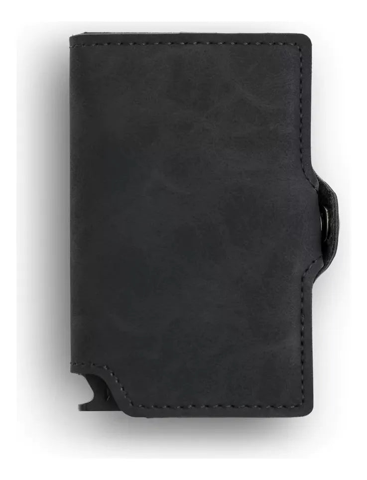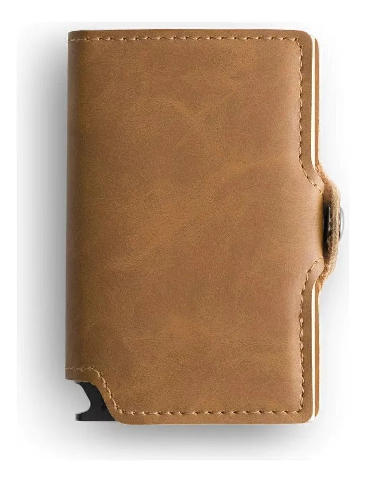 Billetera con Tarjetero para Tarjetas y Billetes. Palanca para expulsar las tarjetas. Medidas: 10Cm de alto x 6.5cm de ancho x 2 cm de grosor. Colores Disponibles: -Marrón Oscuro -Marrón Claro -Gris -Negro