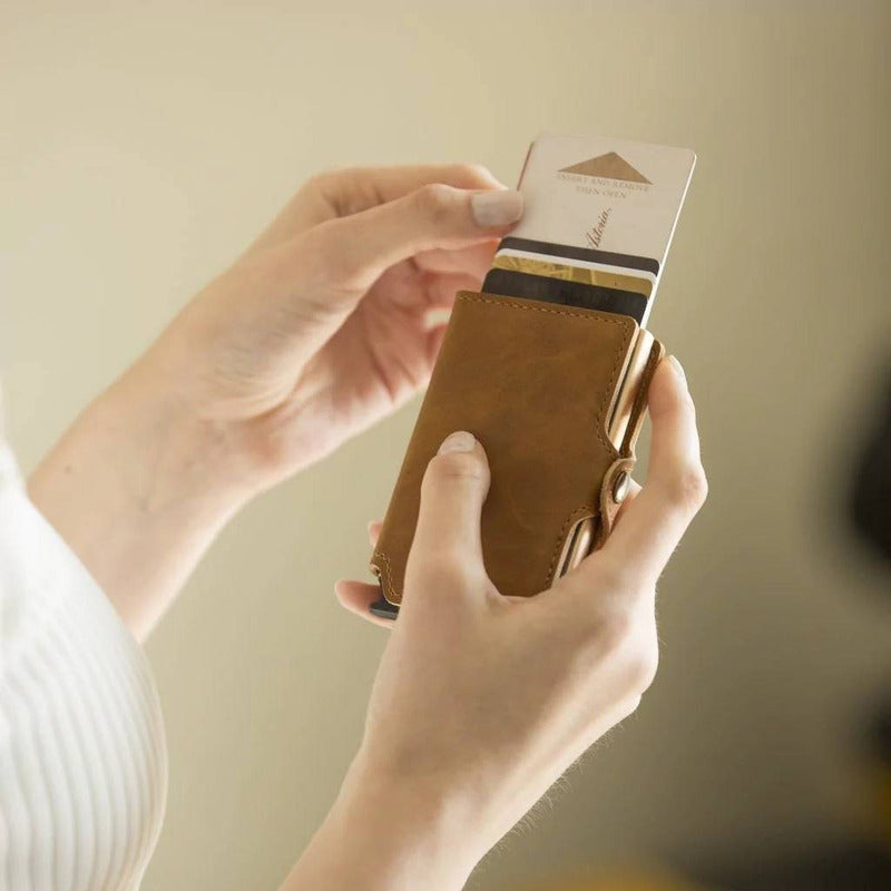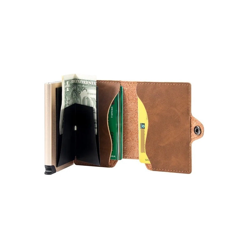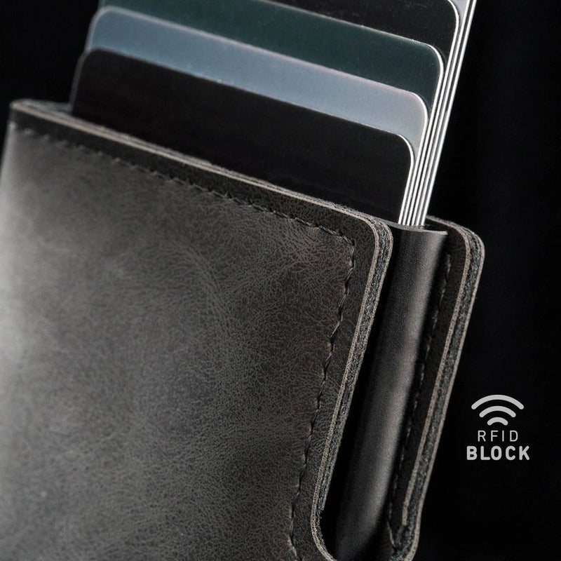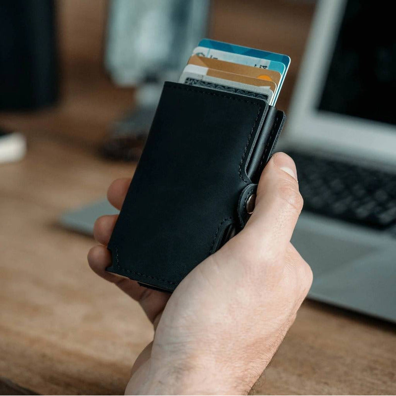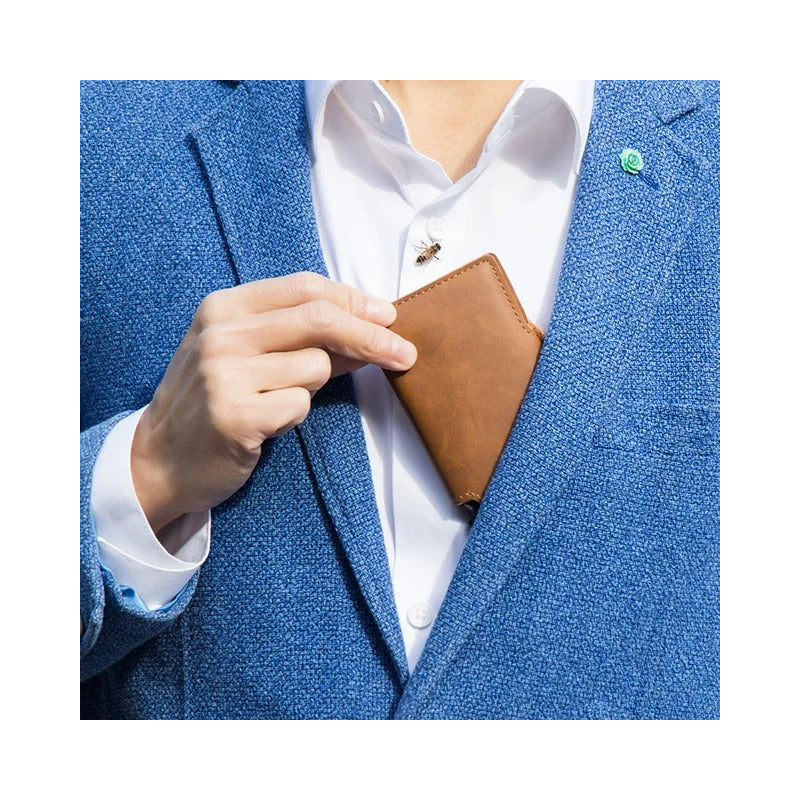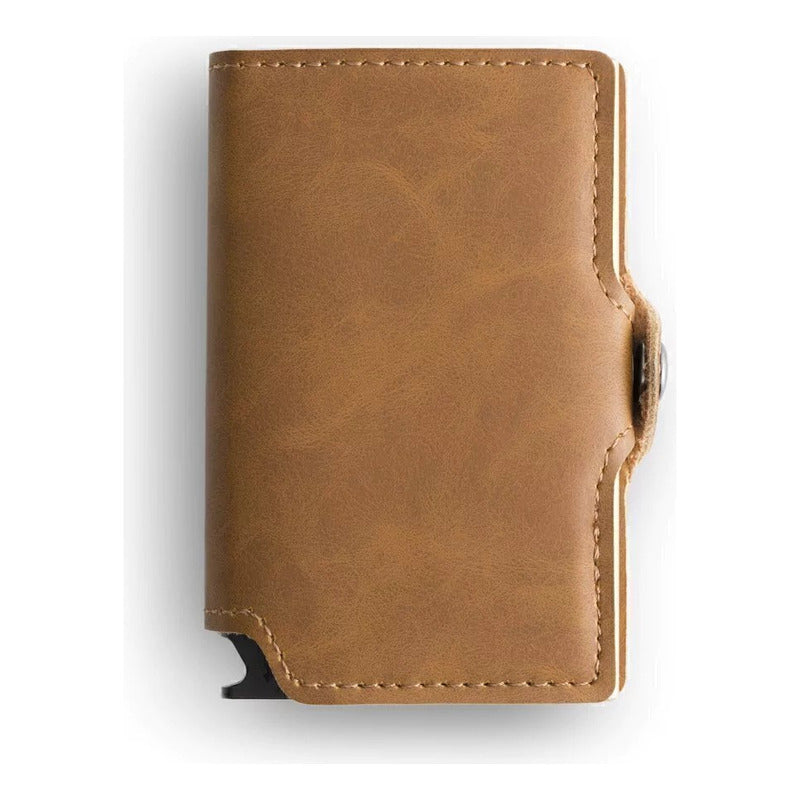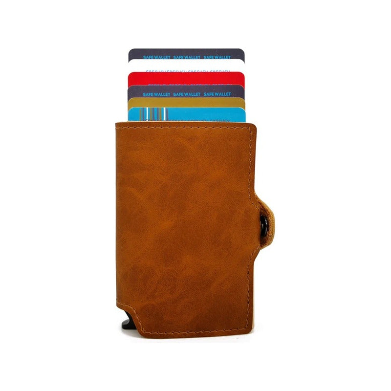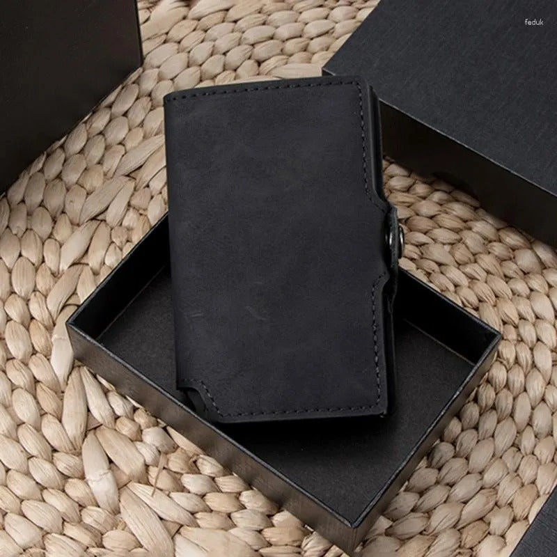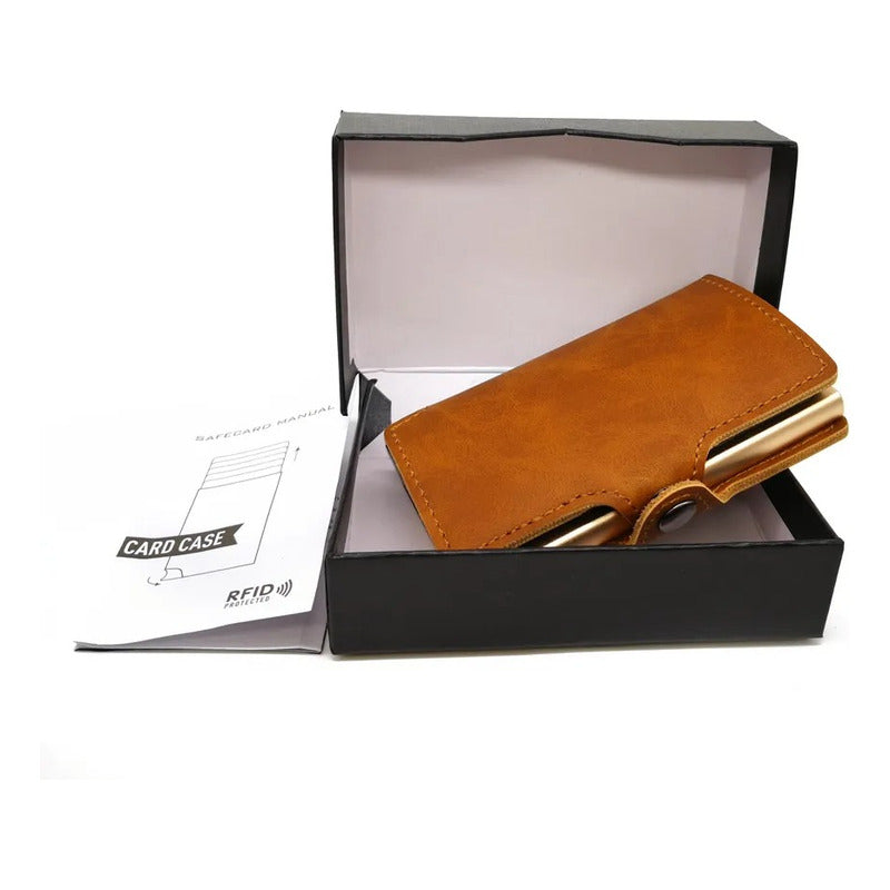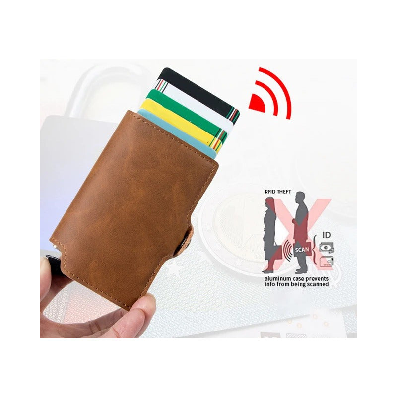 Billetera con Tarjetero para Tarjetas y Billetes. Palanca para expulsar las tarjetas. Medidas: 10Cm de alto x 6.5cm de ancho x 2 cm de grosor. Colores Disponibles: -Marrón Oscuro -Marrón Claro -Gris -Negro