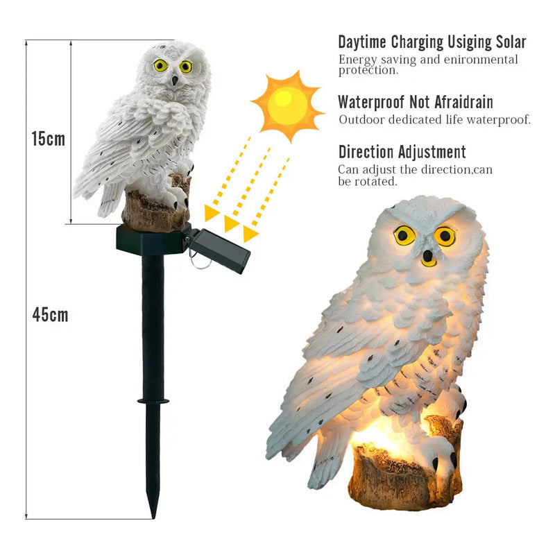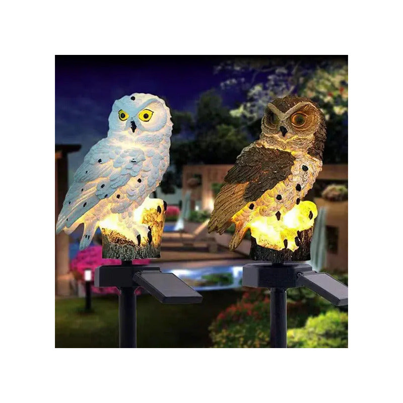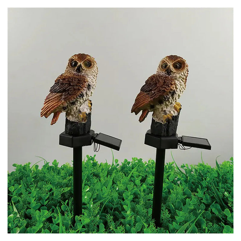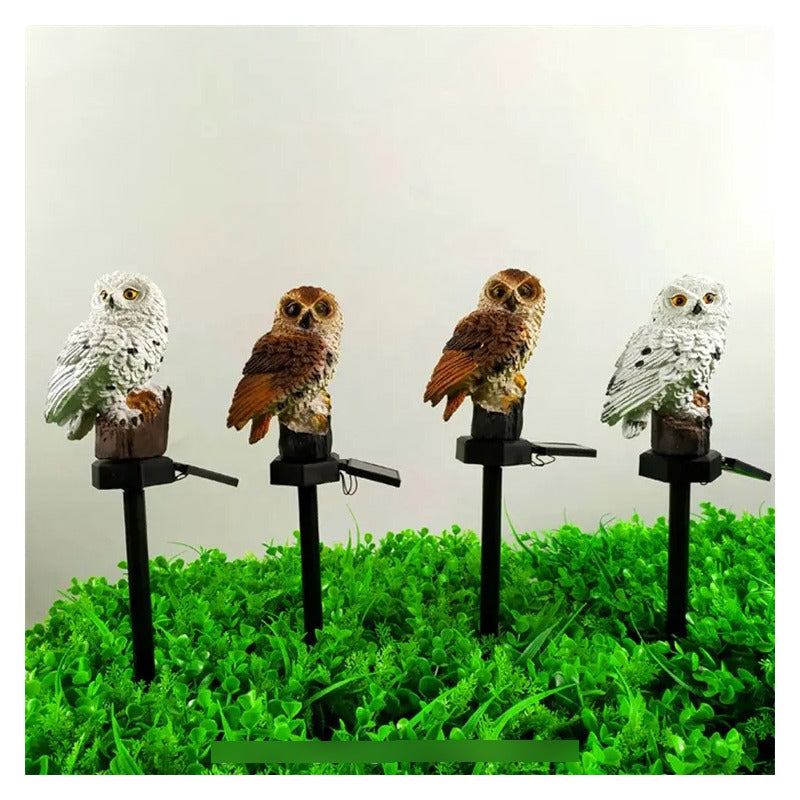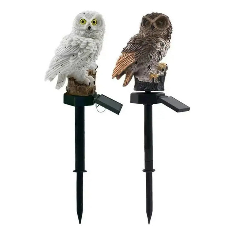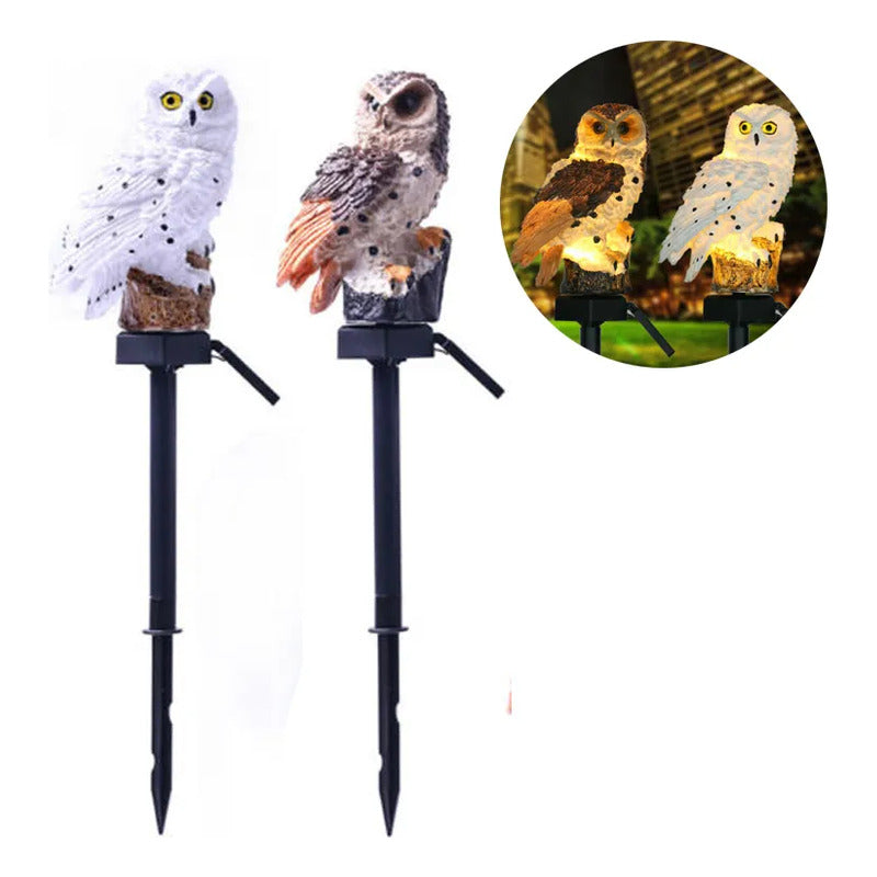 Set de 2 Búhos LED con Carga Solar - Decoración Iluminada para Jardín Dale un toque encantador y mágico a tu jardín con este hermoso set de búhos LED con carga solar. Perfectos para iluminar tus exteriores de manera ecológica y decorativa, estos búhos de diseño realista serán el centro de atención en cualquier espacio al aire libre. Características principales: Iluminación LED solar: Funcionan con energía solar, lo que los hace completamente sostenibles y libres de cables. Durante el día, se cargan con luz solar, y al anochecer se encienden automáticamente. Diseño realista: El set incluye dos búhos de diferentes colores: uno blanco y otro marrón, ambos con detalles cuidados que aportan un aspecto natural y elegante a tu jardín o patio. Material resistente: Fabricados con materiales de alta calidad, resistentes al agua y a las inclemencias del tiempo, ideales para uso exterior durante todo el año. Fácil instalación: No necesitan cables ni enchufes, simplemente colócalos en tu jardín, terraza o balcón y disfruta de una luz suave y acogedora por las noches. Luces automáticas: Se cargan durante el día y encienden automáticamente al anochecer, proporcionando hasta 8 horas de iluminación continua.