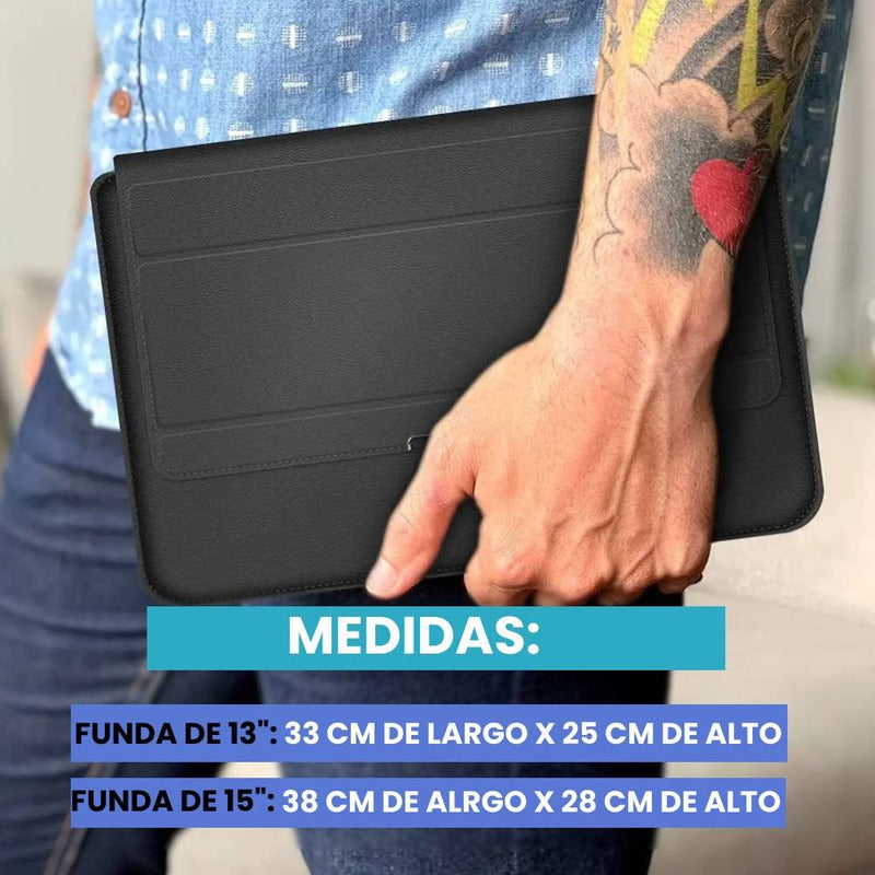 Medidas de la Funda de 13 " : 33 cm de ancho x 25 cm de alto Medidas de la Funda de 15 " : 38 cm de ancho x 28 cm de alto. Funda para Notebook de 13” y 15” Pulgadas - Convertible en Soporte Ergonómico La funda perfecta para tu notebook que combina protección, estilo y funcionalidad. Compatible con laptops de 13” y 15” pulgadas, esta funda ofrece una solución innovadora al convertirse en soporte, mejorando tu postura mientras trabajas o estudias. Ideal para quienes buscan comodidad y seguridad en un solo producto. Características: Compatible con Notebooks de 13” y 15” Pulgadas: Diseñada para adaptarse a una amplia variedad de modelos de notebooks y laptops, brindando un ajuste perfecto. Convertible en Soporte: Esta funda se transforma fácilmente en un soporte ergonómico, elevando tu dispositivo a una posición más cómoda para trabajar o ver contenido. Protección Completa: Fabricada con materiales de alta calidad que protegen tu laptop de golpes, rasguños y polvo, asegurando su durabilidad a largo plazo. Diseño Elegante y Práctico: Combina un estilo moderno con una funcionalidad excepcional. Ideal para quienes buscan una solución compacta y eficiente