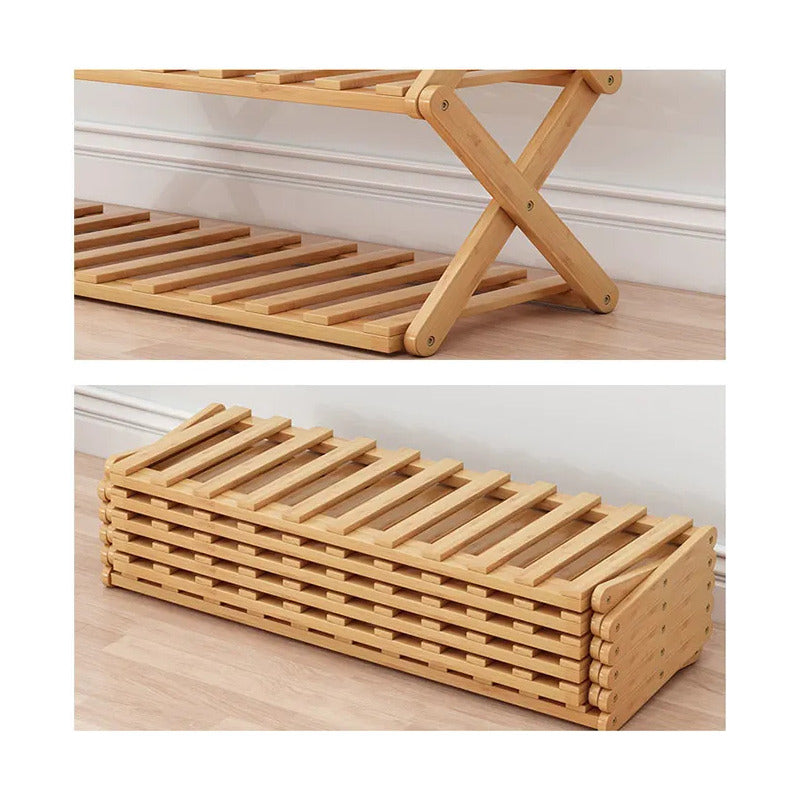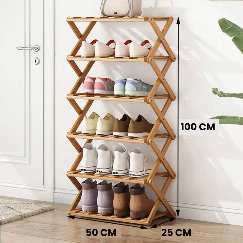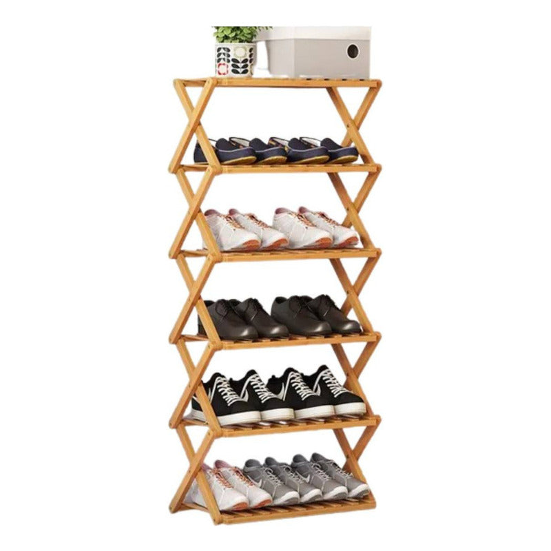 Zapatera Organizador De Zapatos Plegable De Bambú 6 Niveles
