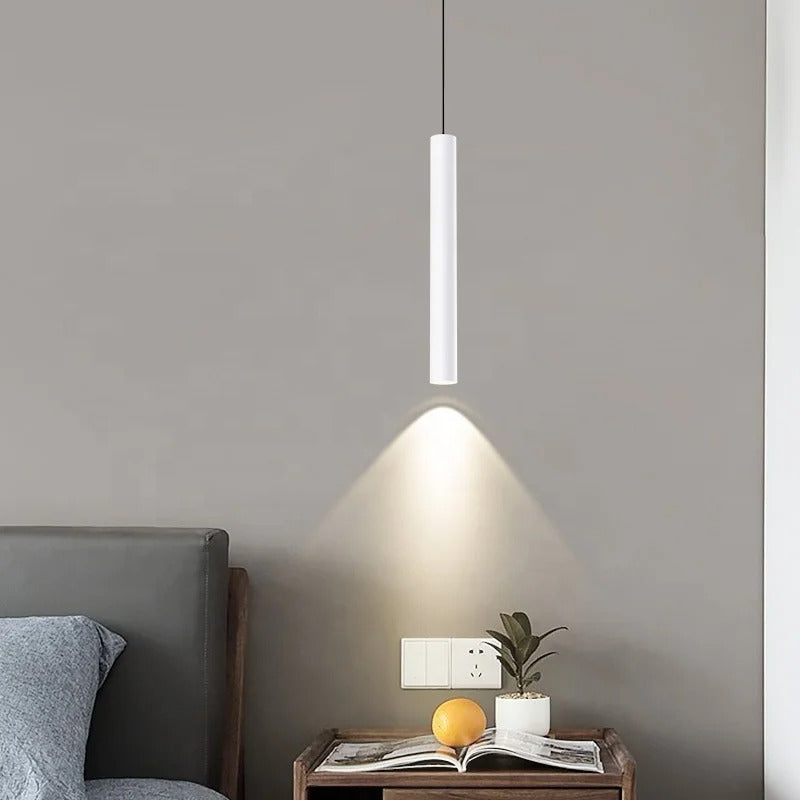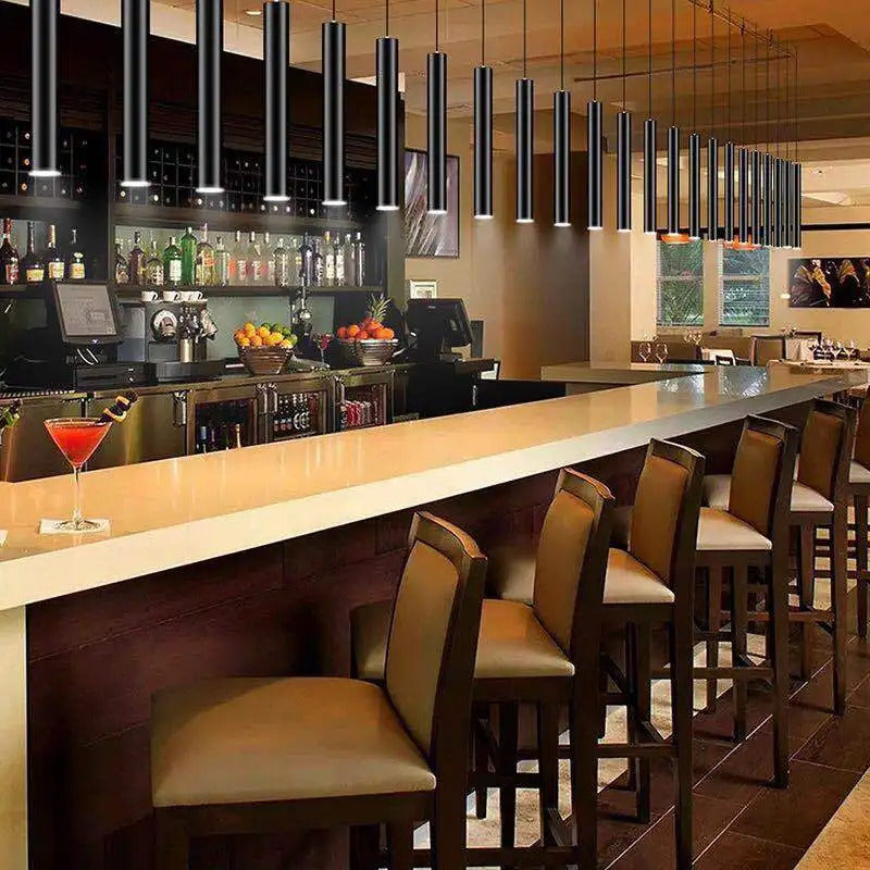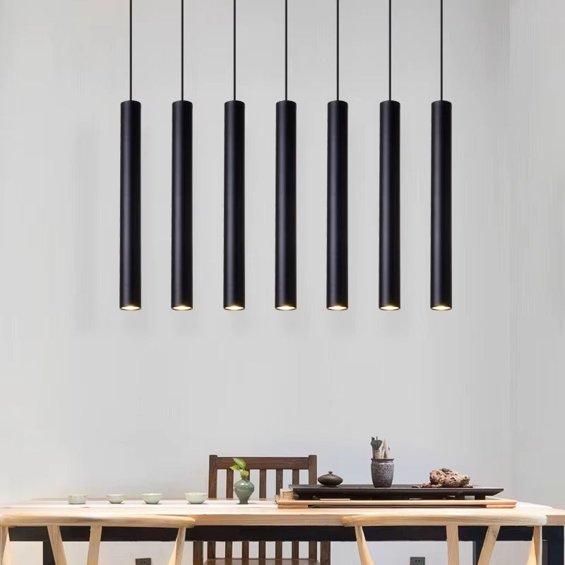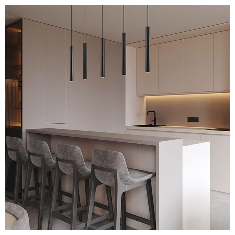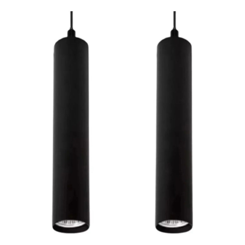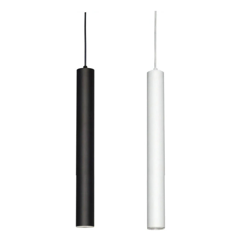 Luminaria Lámpara Aplique Colgante Cilíndrica de Aluminio 60 cm Lámpara colgante de diseño moderno con cuerpo cilíndrico alargado de aluminio, ideal para iluminación puntual en espacios interiores. Tubo de 60 cm de largo Cable de suspensión de 90 cm de largo, regulable en altura Color de luz ligeramente cálido (3000 K) Incluye lámpara GU10 de bajo consumo Disponible en color blanco y color negro Eficiencia Energetica: A+ Ideal para barras de cocina, mesas, pasillos o espacios comerciales. Funciona directamente con red eléctrica de 220V.