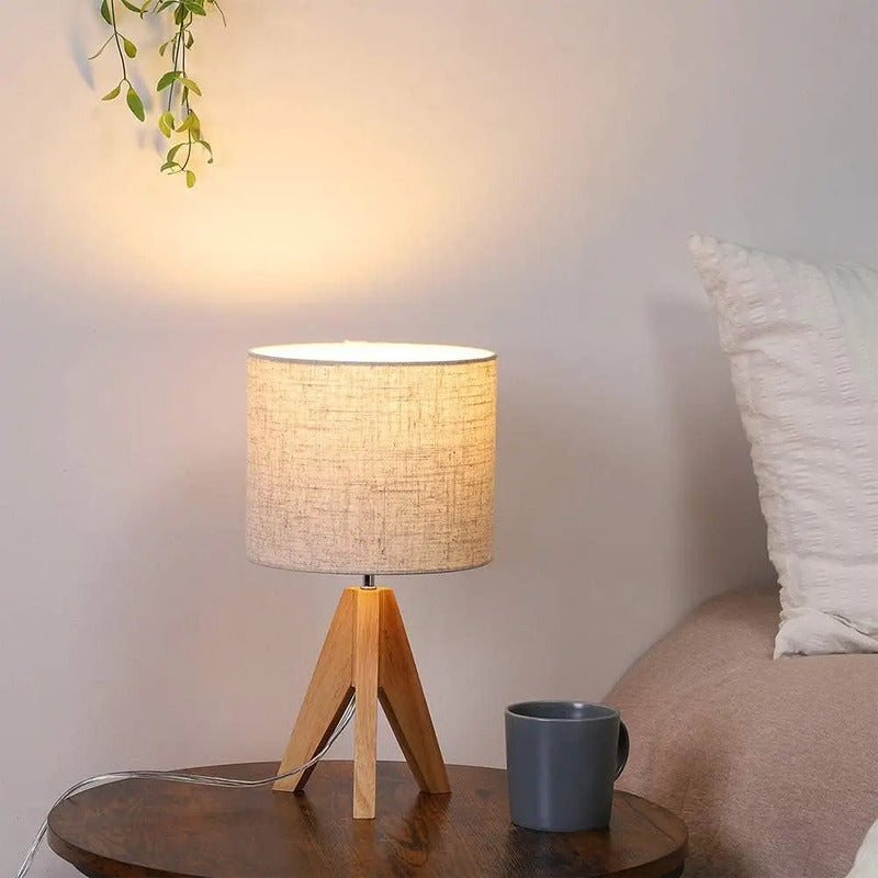 Lampara De Mesa Escritorio Tripode De Madera Con Pantalla