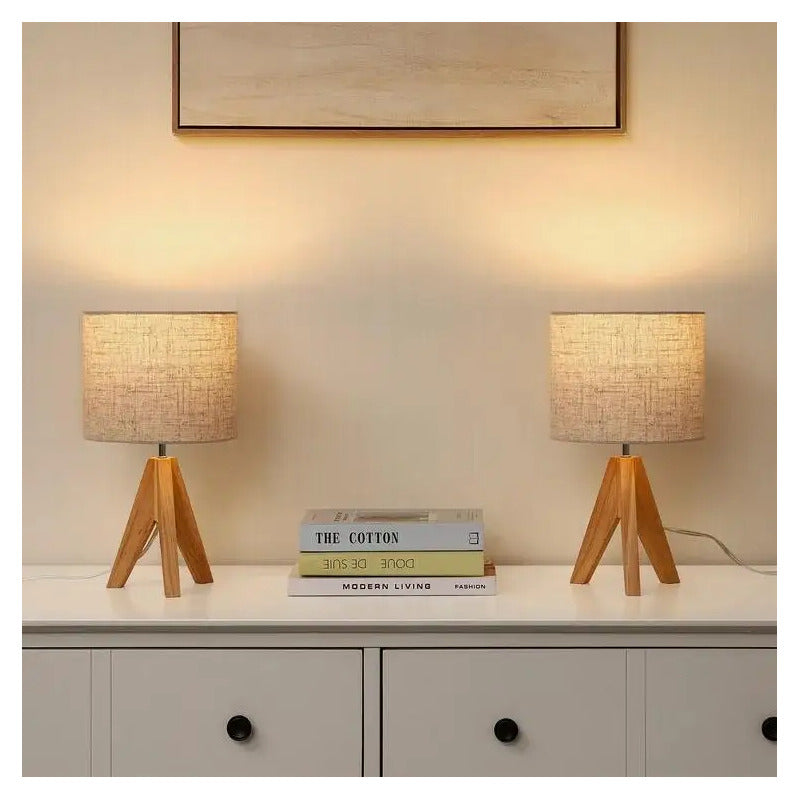 Lámpara de Mesa Escritorio Trípode de Madera con Pantalla y Luz LED Integrada Lámpara de mesa con base tipo trípode de madera y pantalla textil, ideal para escritorios, mesas de noche o espacios de lectura. Su diseño combina funcionalidad con una estética cálida y natural. Características: Base de madera con diseño tipo trípode Pantalla de tela que difumina suavemente la luz Luz LED integrada, no requiere bombillas adicionales Temperatura de color ligeramente CALIDA: 3000 K Apta para uso en dormitorios, livings, escritorios u oficinas Interruptor de encendido/apagado en el cable Alimentación: Conexión mediante cable USB (incluido) Medidas: 32 cm de alto y 18 cm de ancho Diseño práctico y decorativo, ideal para aportar luz ambiental y estilo a cualquier ambiente.